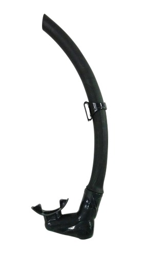 Snorkel with hidden evacuation valve for water gathered at the low end of the mouthpiece, which provides smooth breathing.